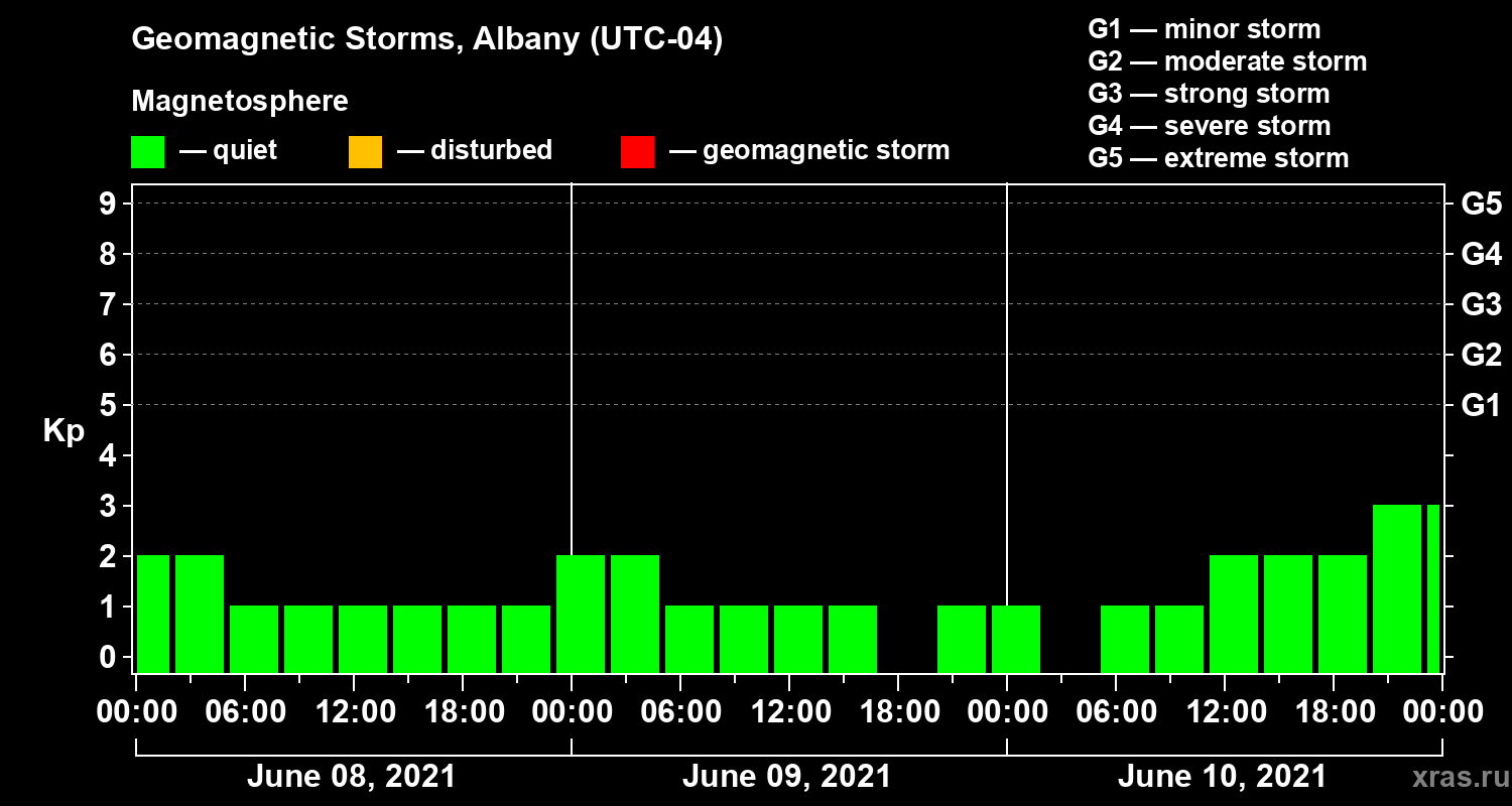 Geomagnetic storms in Albany on Jun 10, 2021