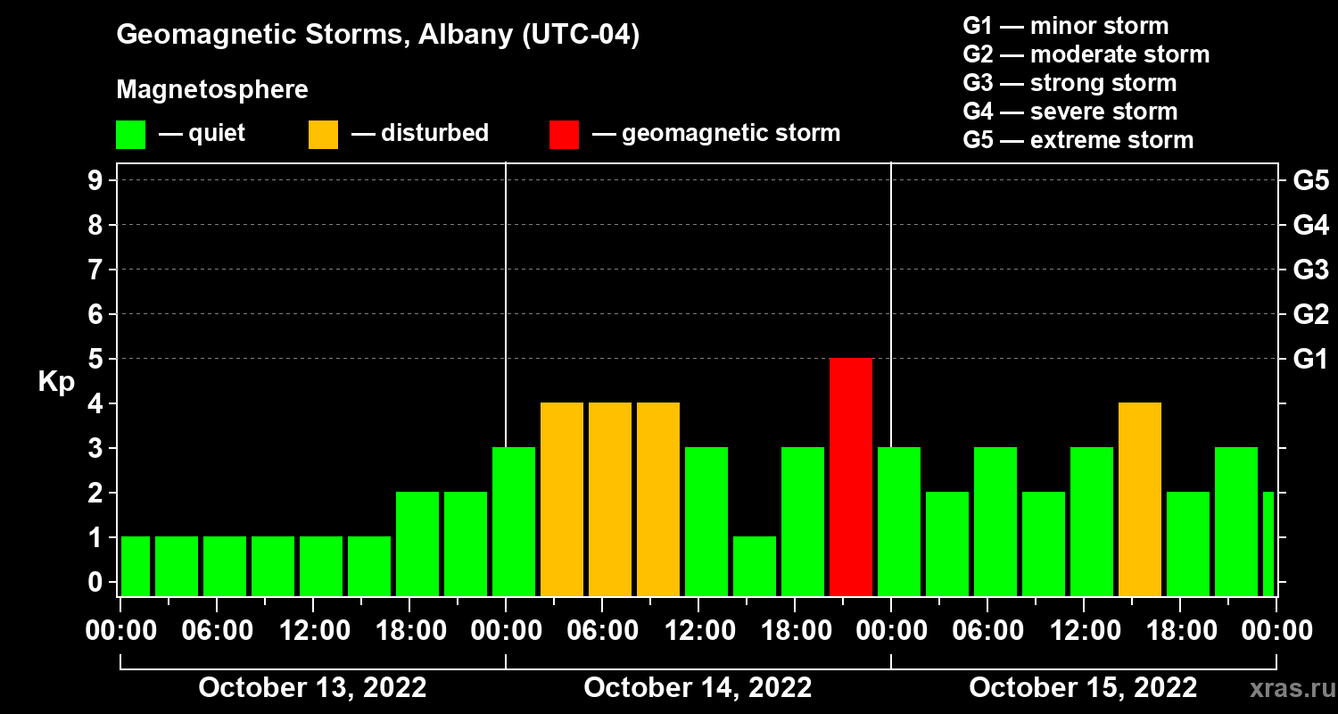 Geomagnetic storms in Albany — Oct 15, 2022