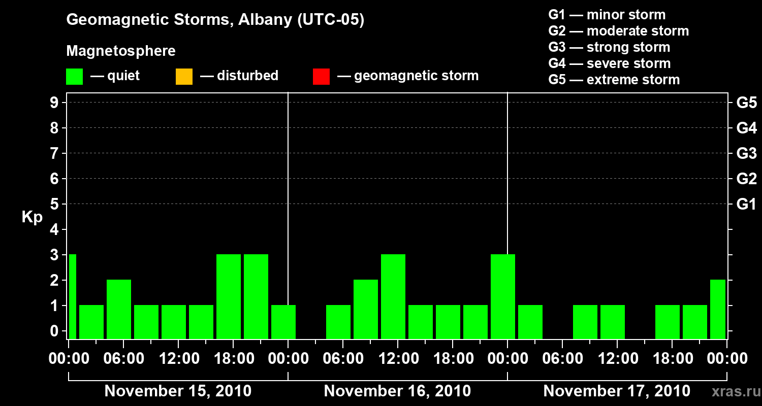 Geomagnetic storms in Albany on Nov 17, 2010