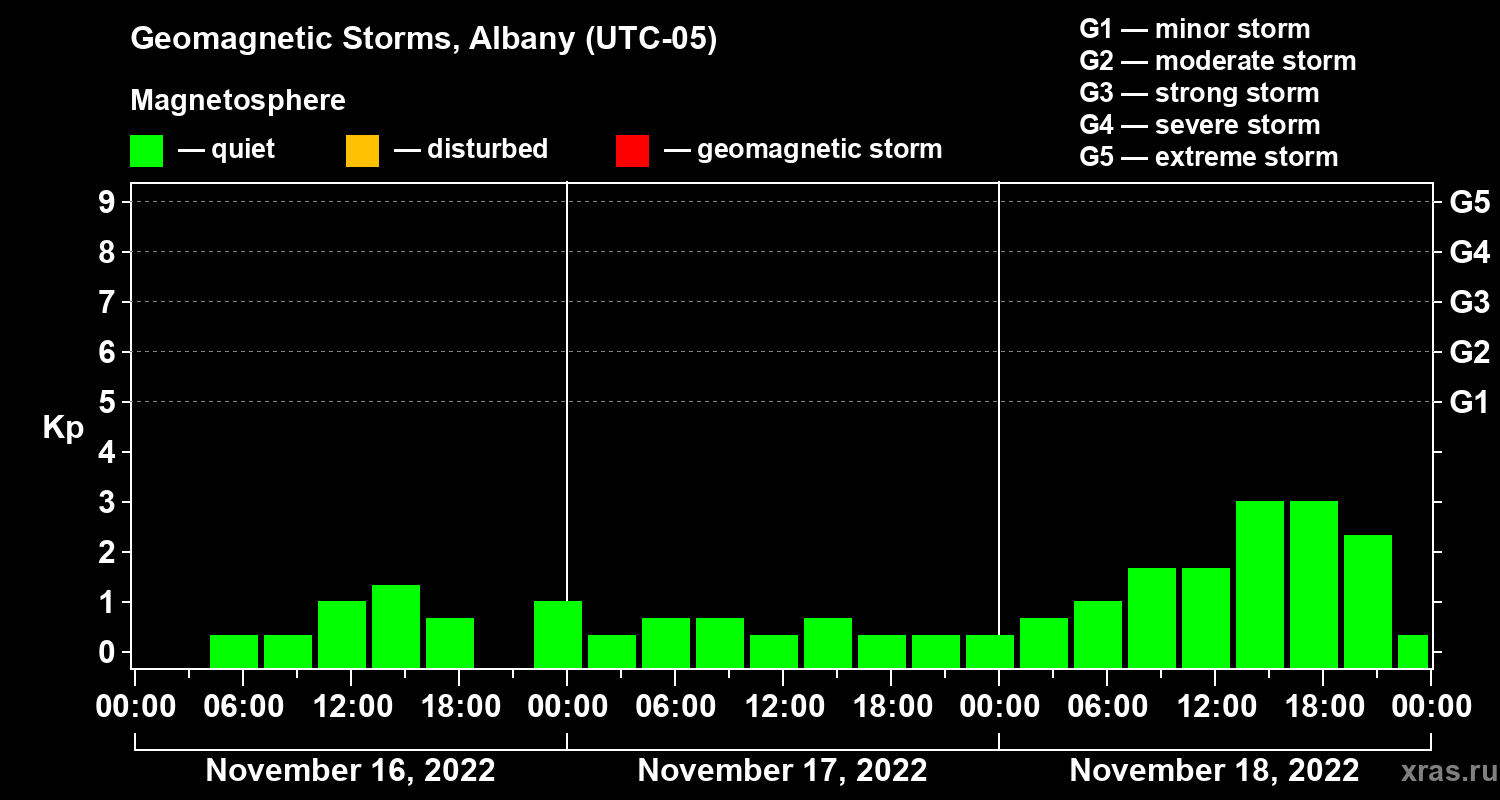 Changes in the geomagnetic index Kp from November 16 to 18, 2022 for mid latitudes