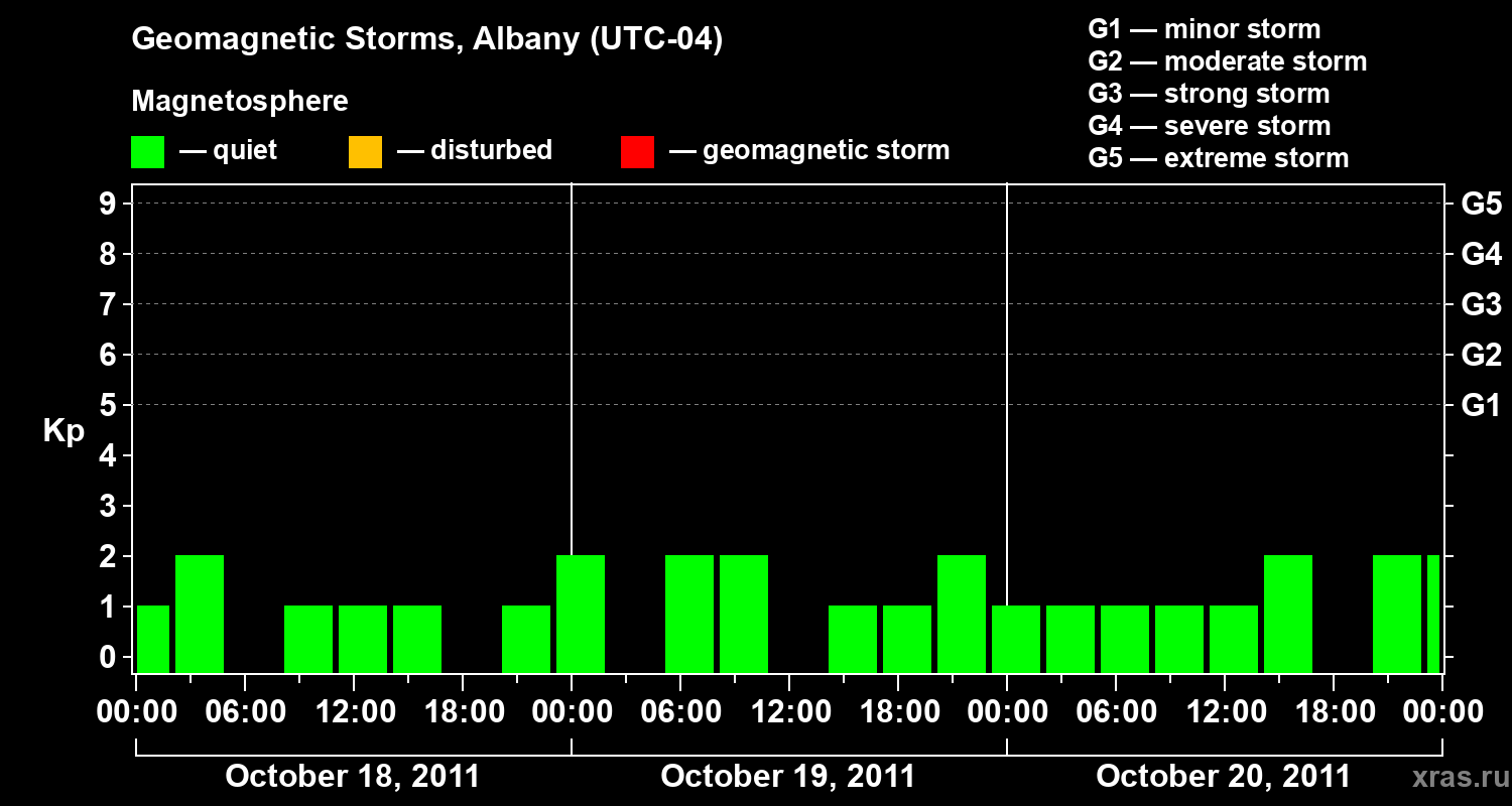 Changes in the geomagnetic index Kp from October 18 to 20, 2011 for mid latitudes