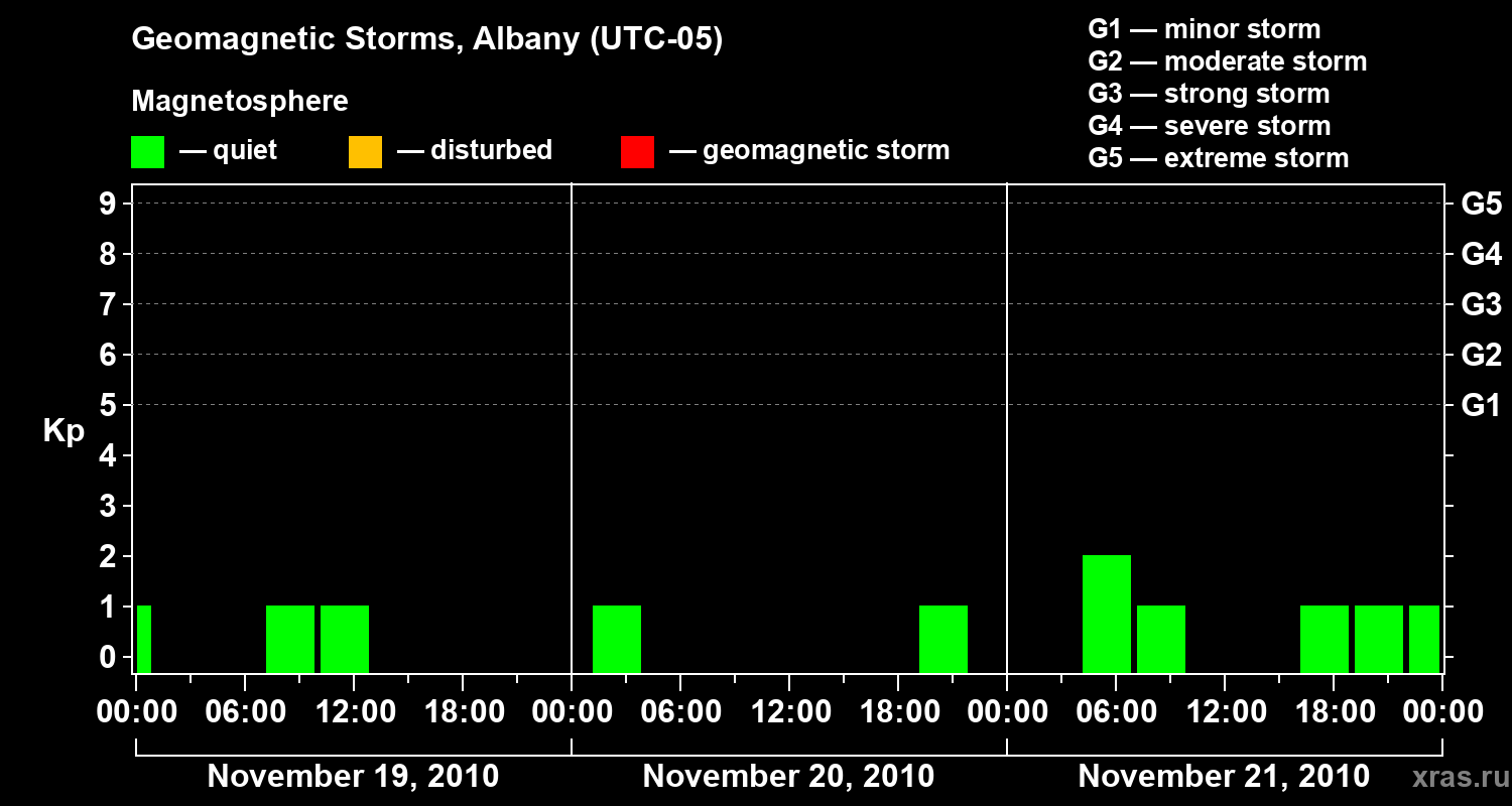Geomagnetic storms in Albany on Nov 21, 2010