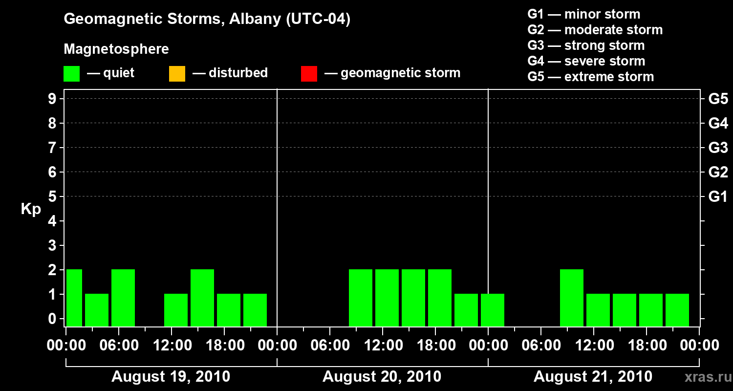 Geomagnetic storms in Albany on Aug 21, 2010