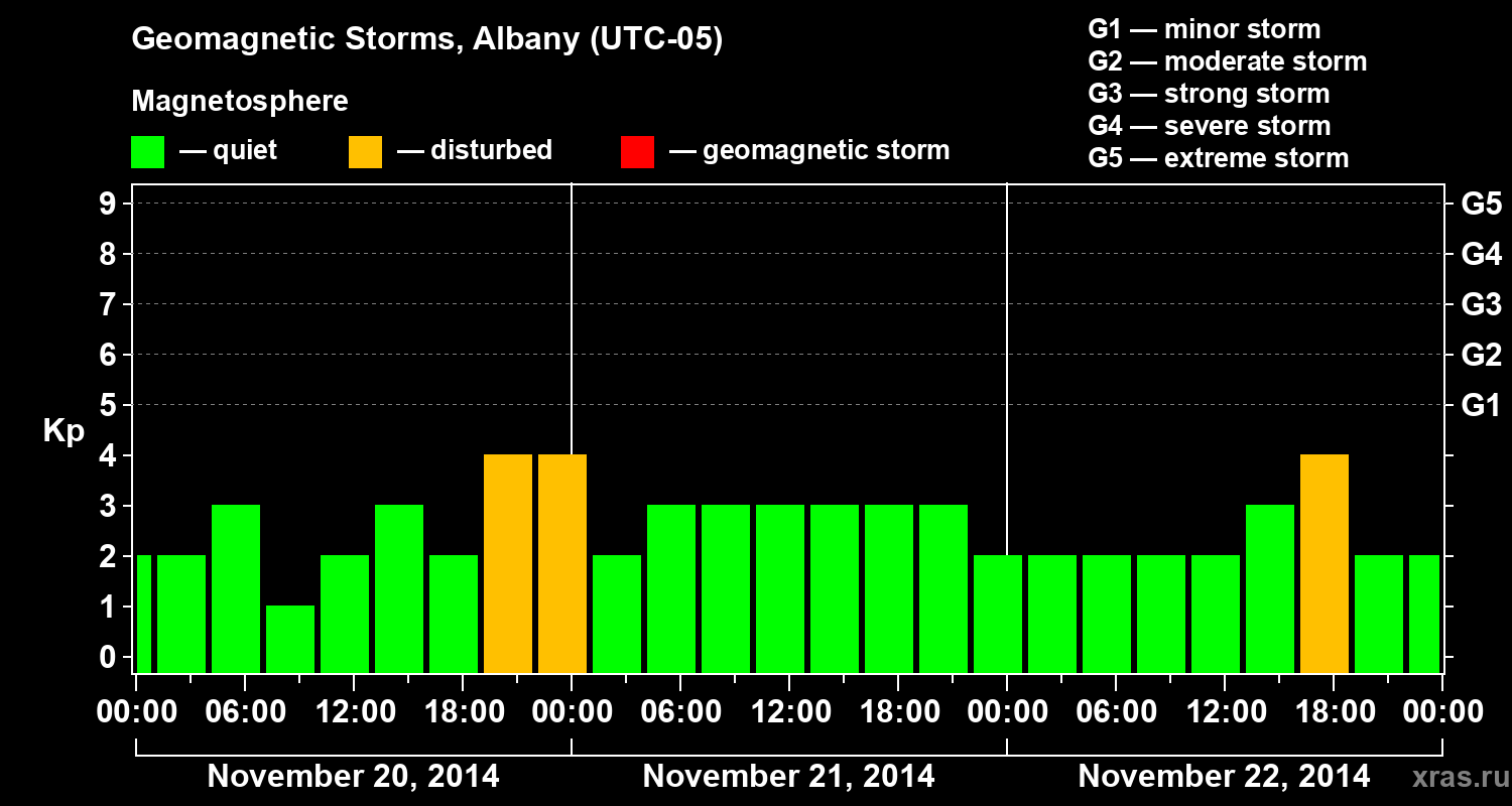 Geomagnetic storms in Albany on Nov 22, 2014