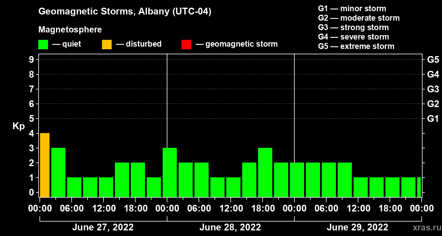 Geomagnetic storms in Albany on Jun 29, 2022