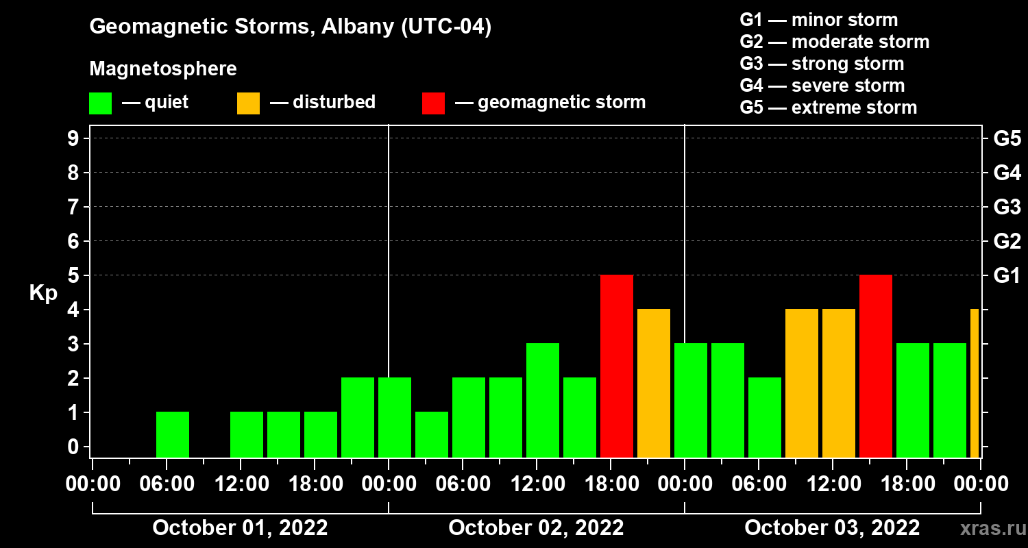 Geomagnetic storms in Albany — Oct 03, 2022