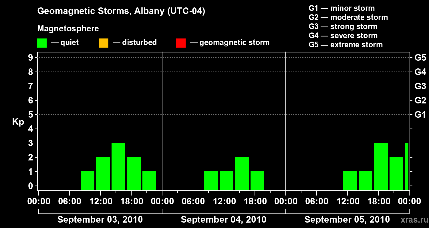 Changes in the geomagnetic index Kp from September 3 to 5, 2010 for mid latitudes