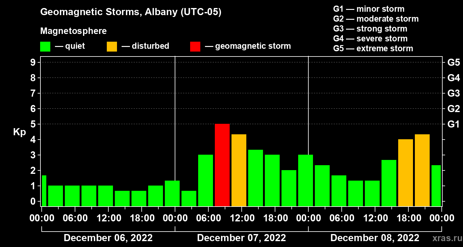 Changes in the geomagnetic index Kp from December 6 to 8, 2022 for mid latitudes