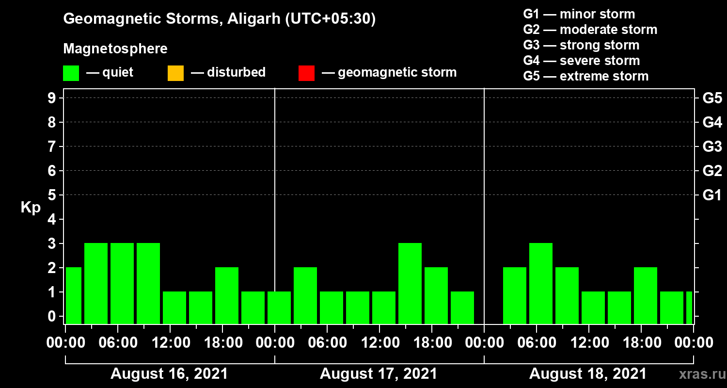 Geomagnetic storms in Aligarh in August 2021