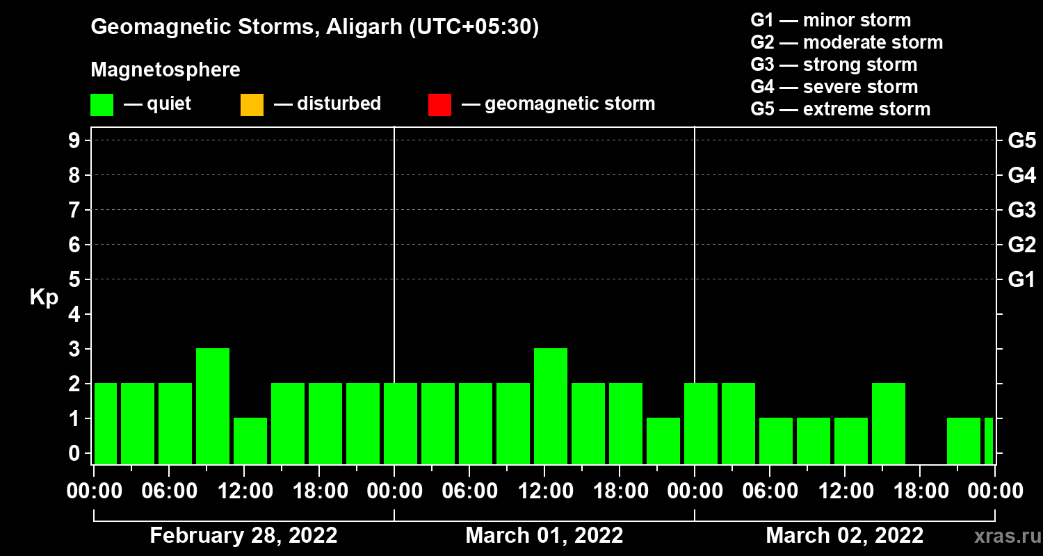 Geomagnetic storms in Aligarh — Mar 02, 2022