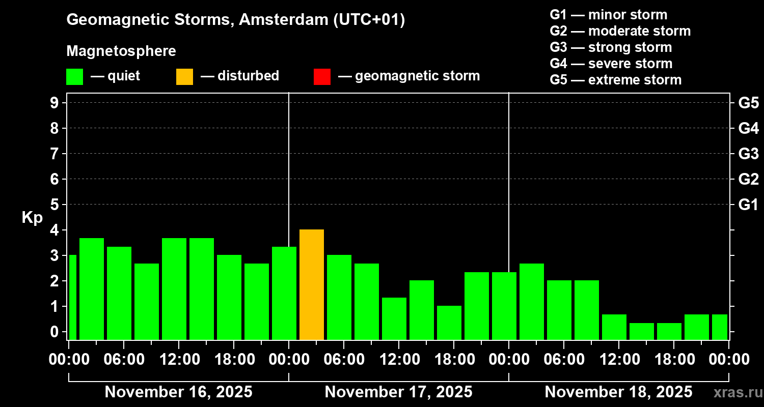 Geomagnetic storms in Amsterdam — Nov 18, 2025