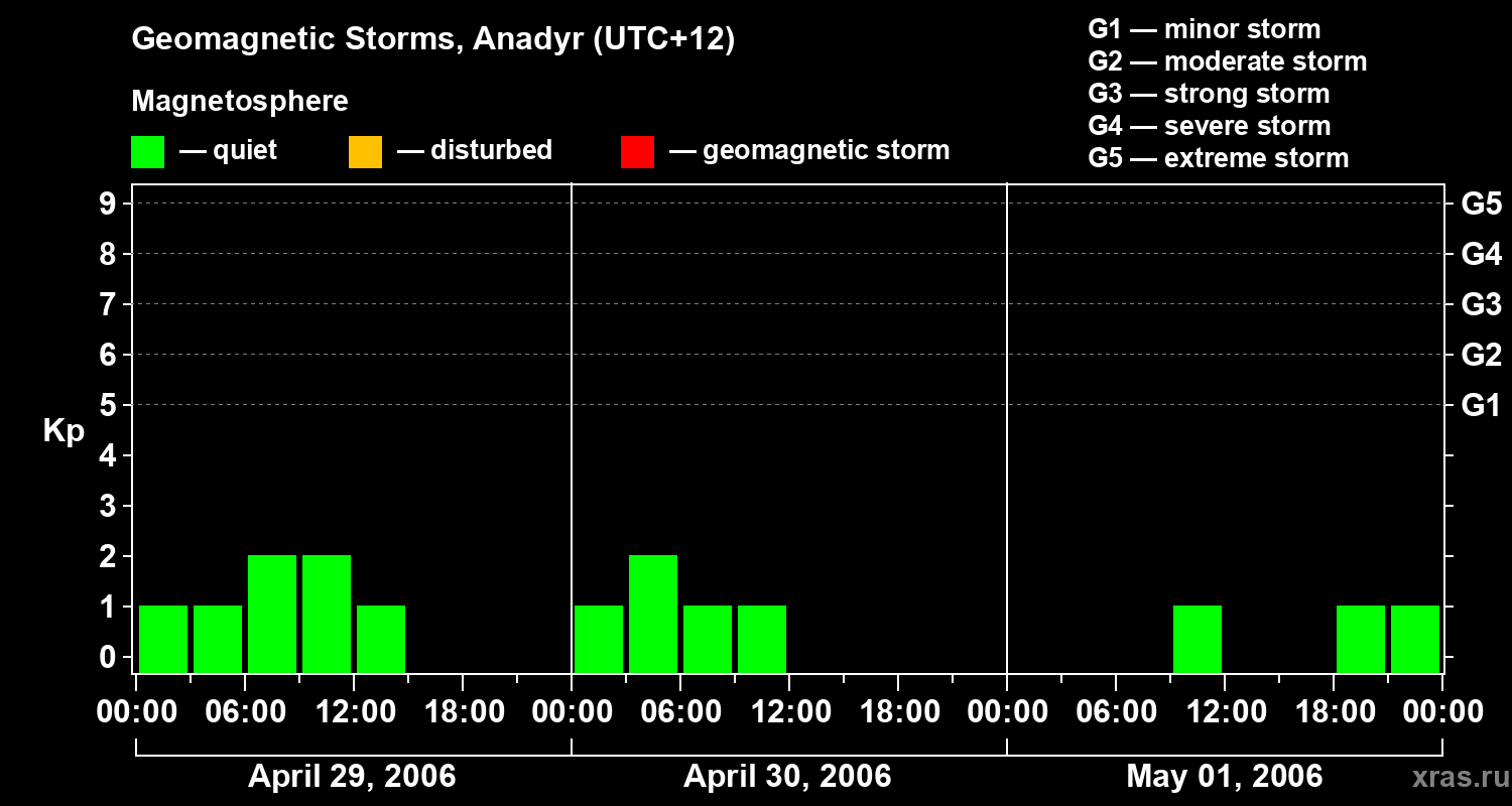 Changes in the geomagnetic index Kp from April 29 to May 1, 2006 for mid latitudes