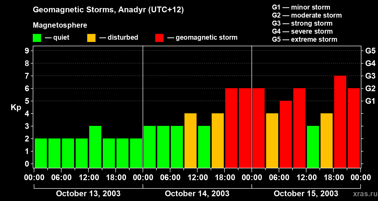 Geomagnetic storms in Anadyr — Oct 15, 2003