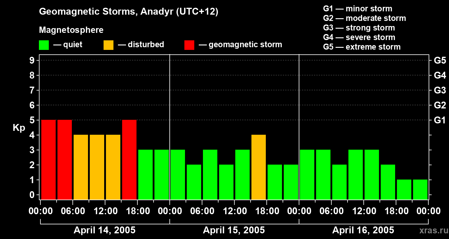 Geomagnetic storms in Anadyr — Apr 16, 2005