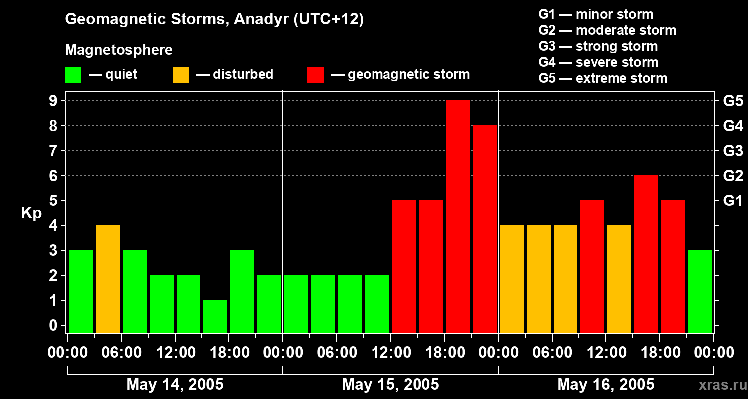 Geomagnetic storms in Anadyr in May 2005