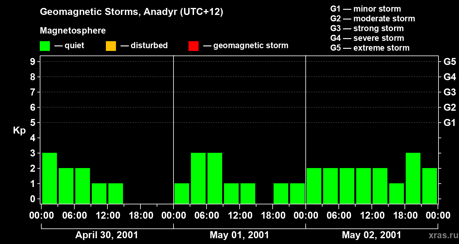 the Earth's magnetosphere was quiet (Kp = 3.00)