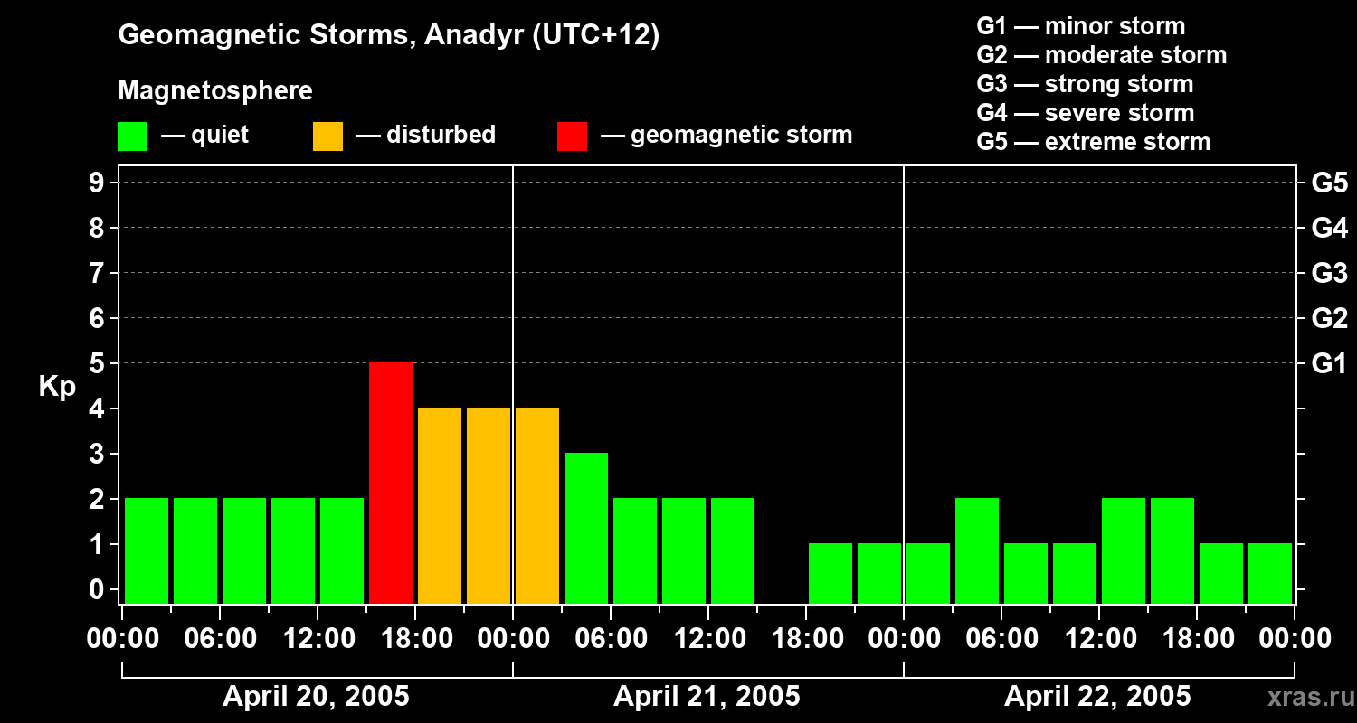 Geomagnetic storms in Anadyr — Apr 22, 2005