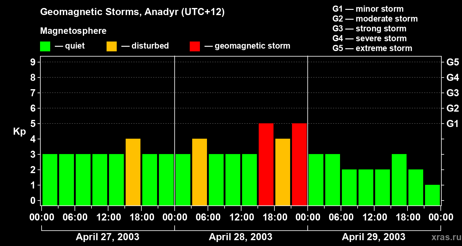 Geomagnetic storms in Anadyr — Apr 29, 2003