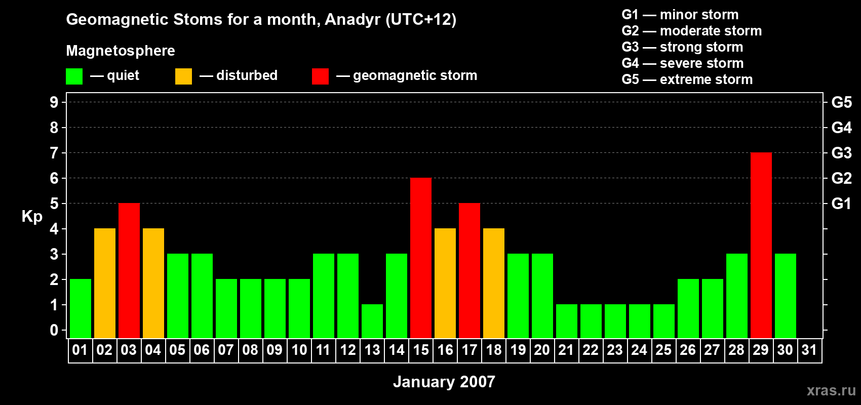 Geomagnetic storms in Anadyr — Jan 31, 2007