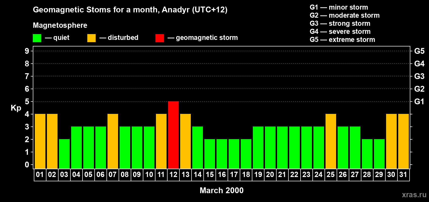 Geomagnetic storms in Anadyr — Mar 31, 2000