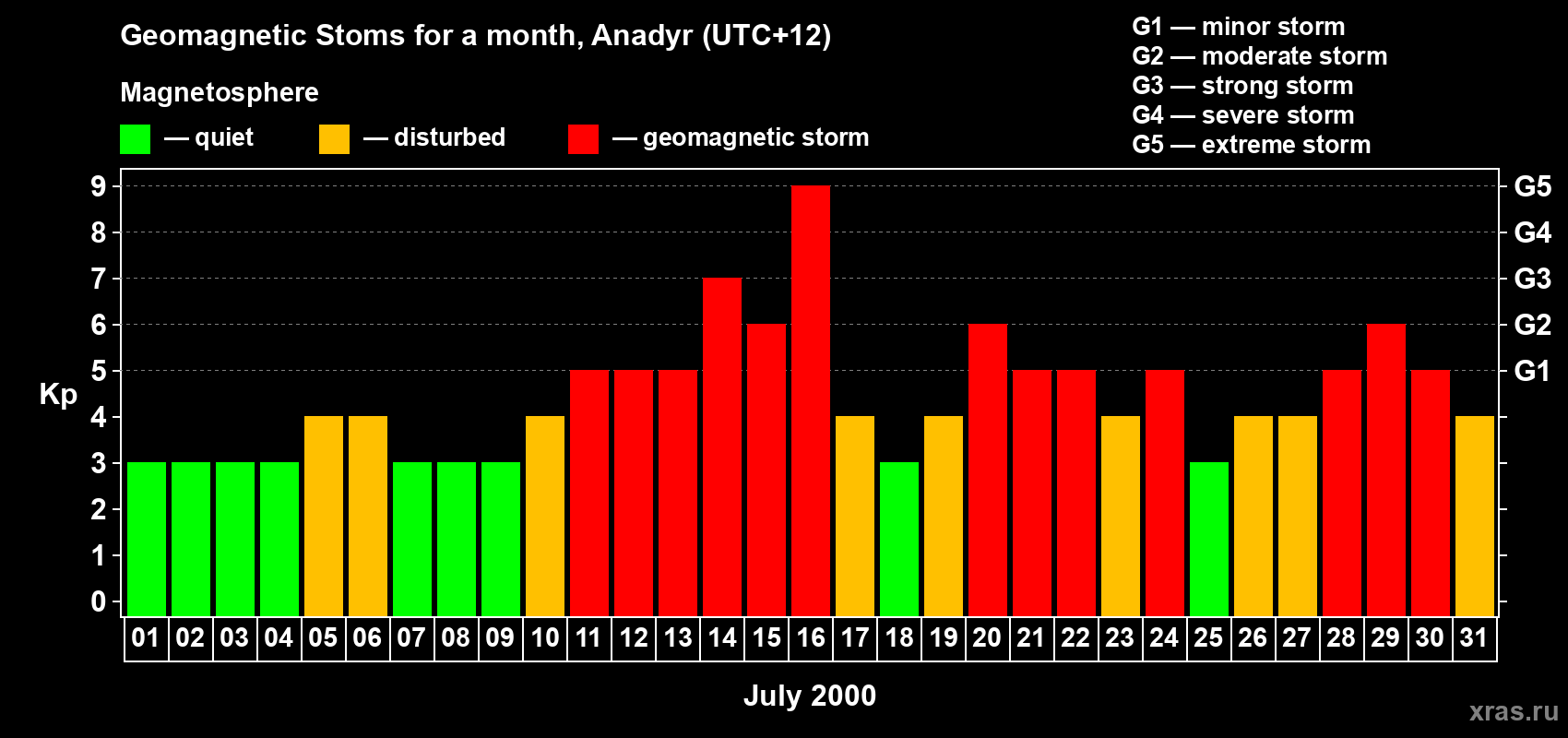 Geomagnetic storms in Anadyr — Jul 31, 2000