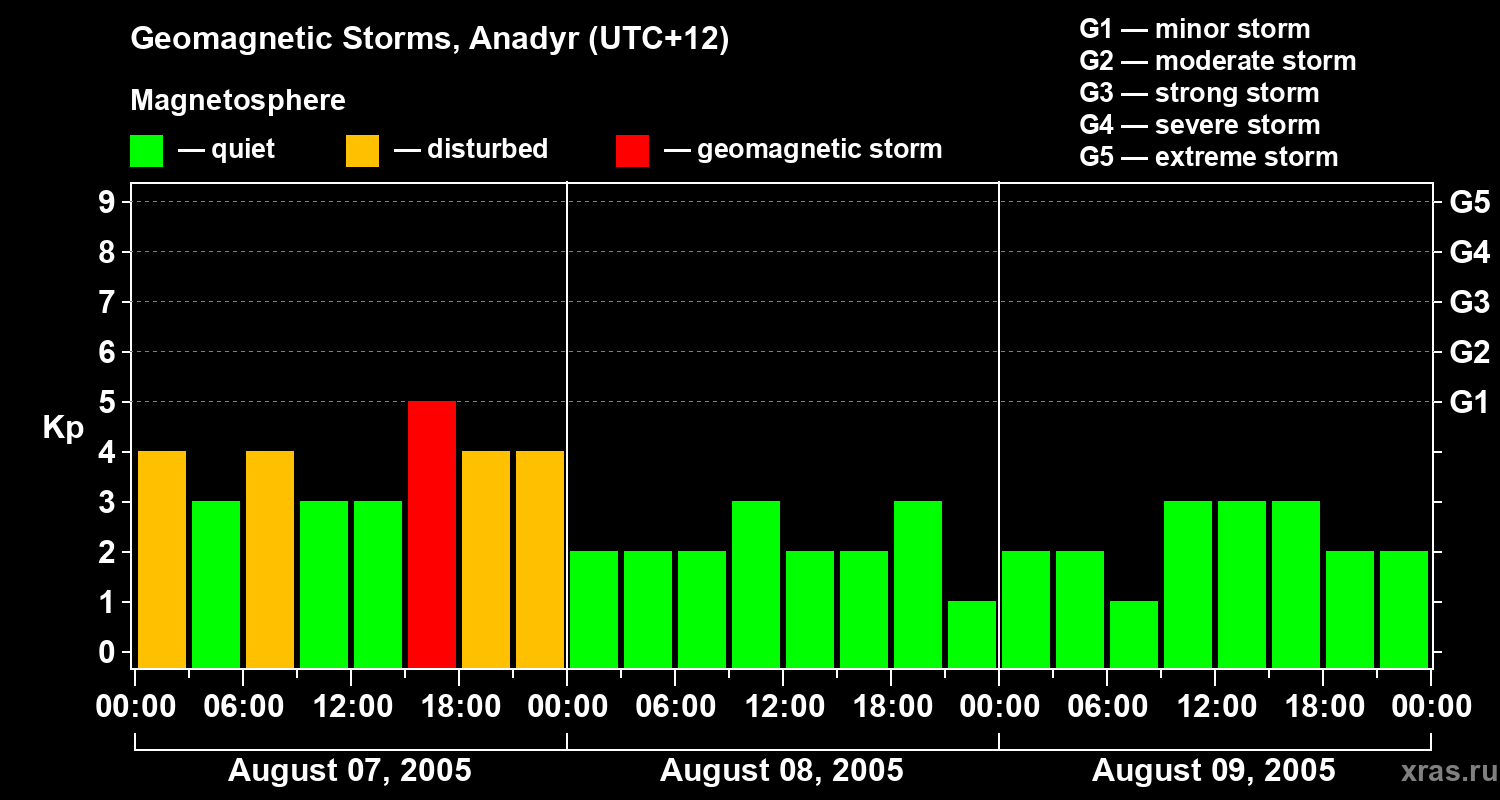 Geomagnetic storms in Anadyr on Aug 09, 2005