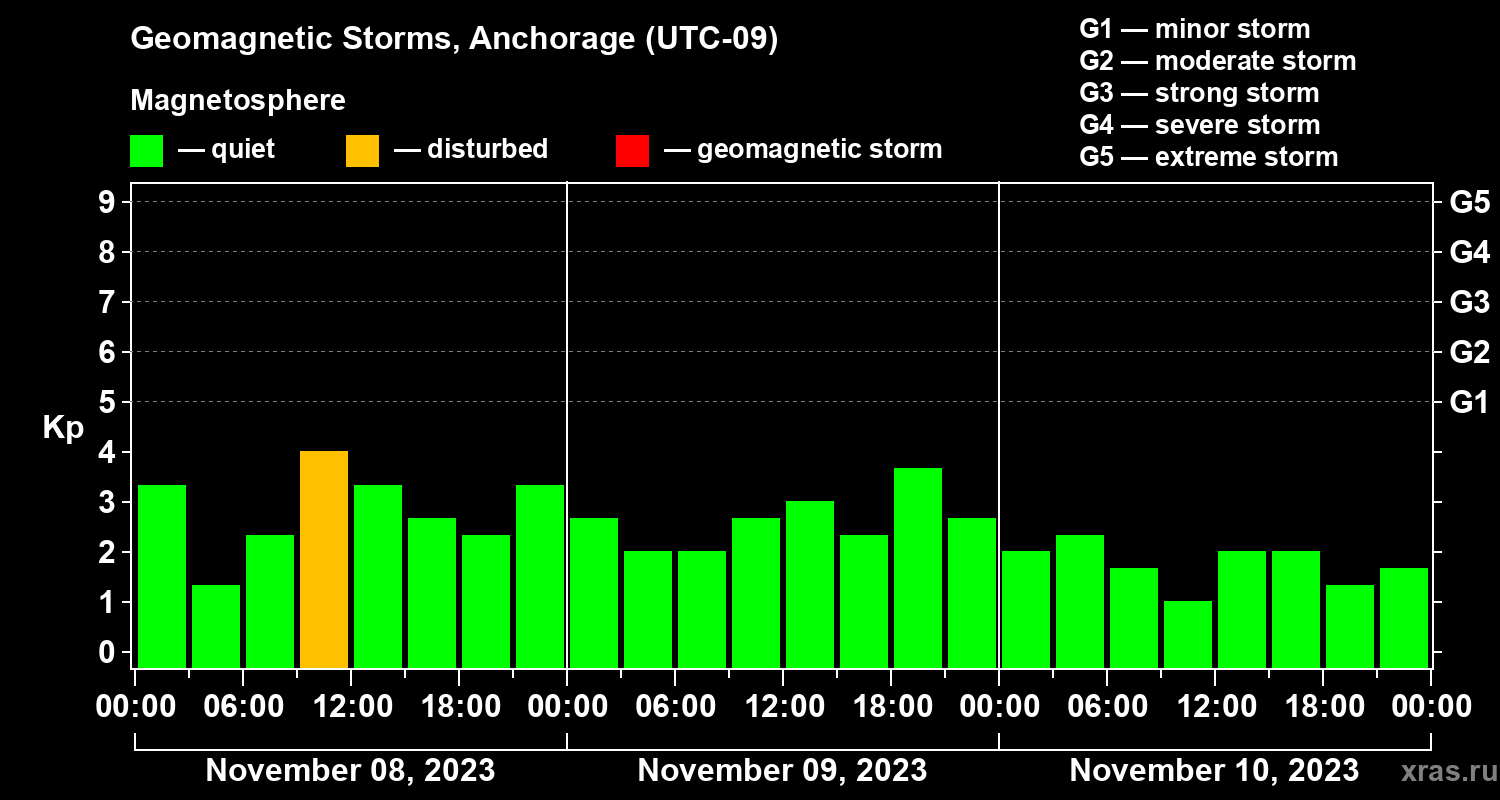Geomagnetic storms in Anchorage — Nov 10, 2023