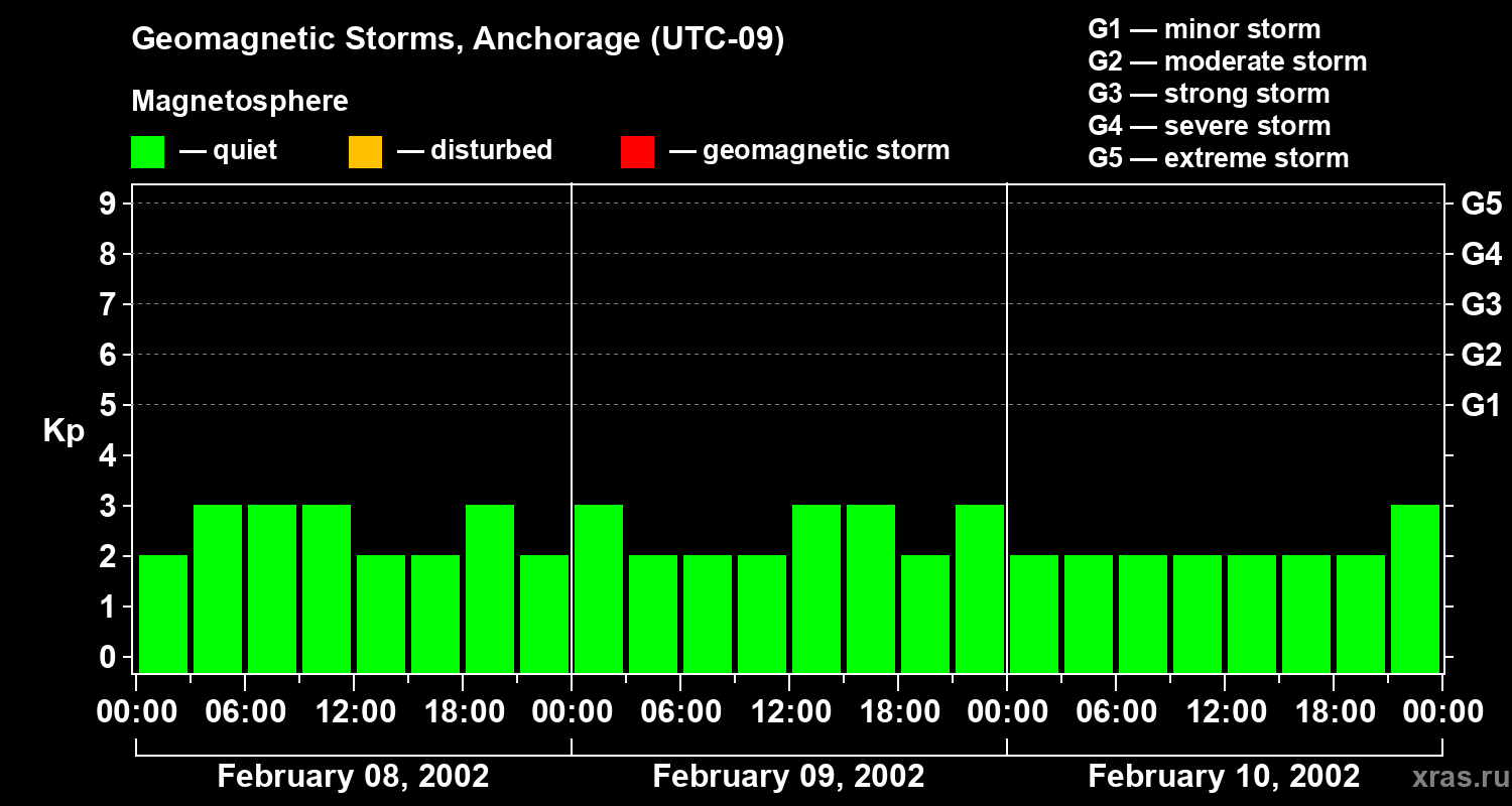 Geomagnetic storms in Anchorage in February 2002