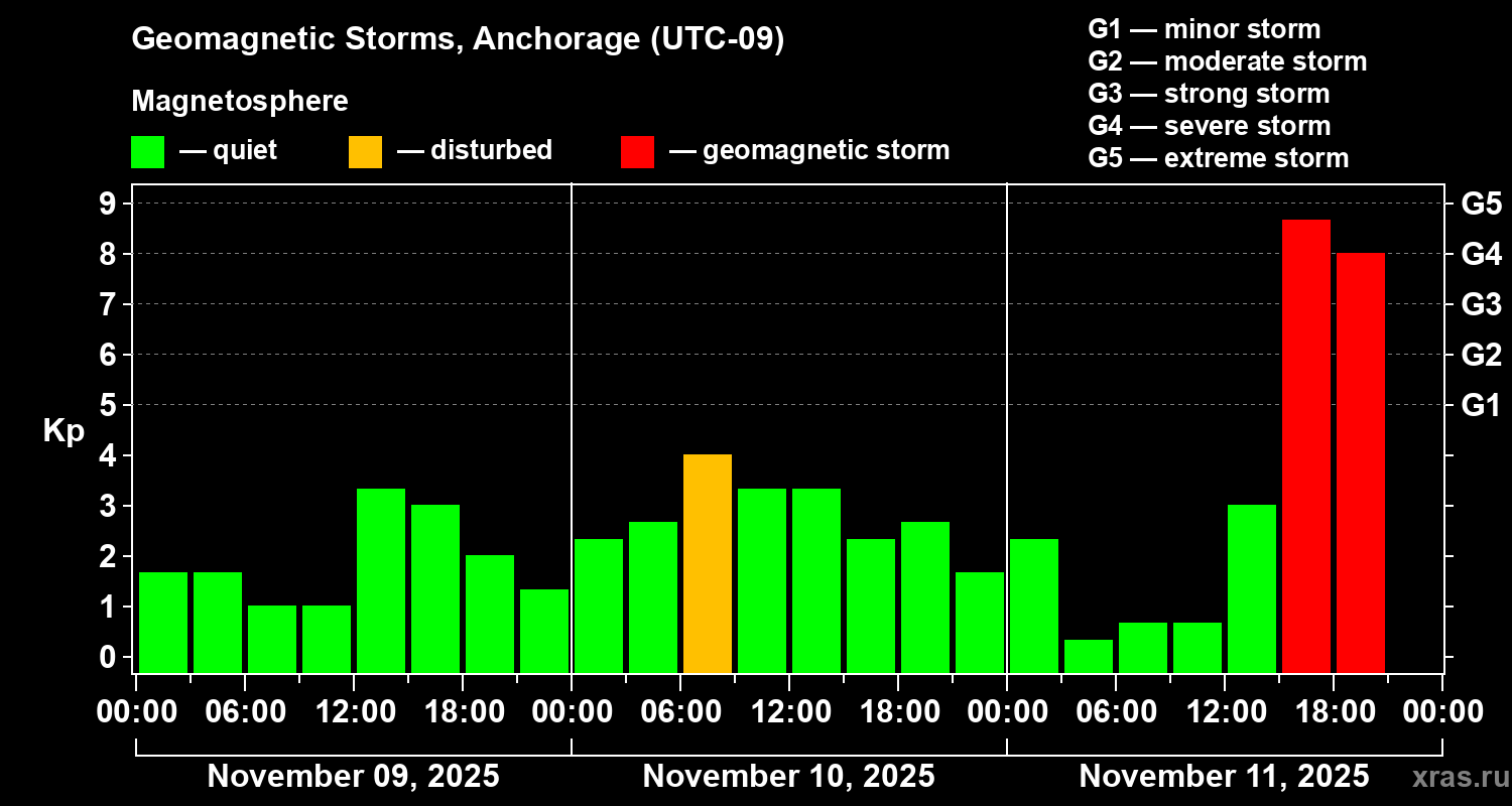 Geomagnetic storms in Anchorage — Nov 11, 2025