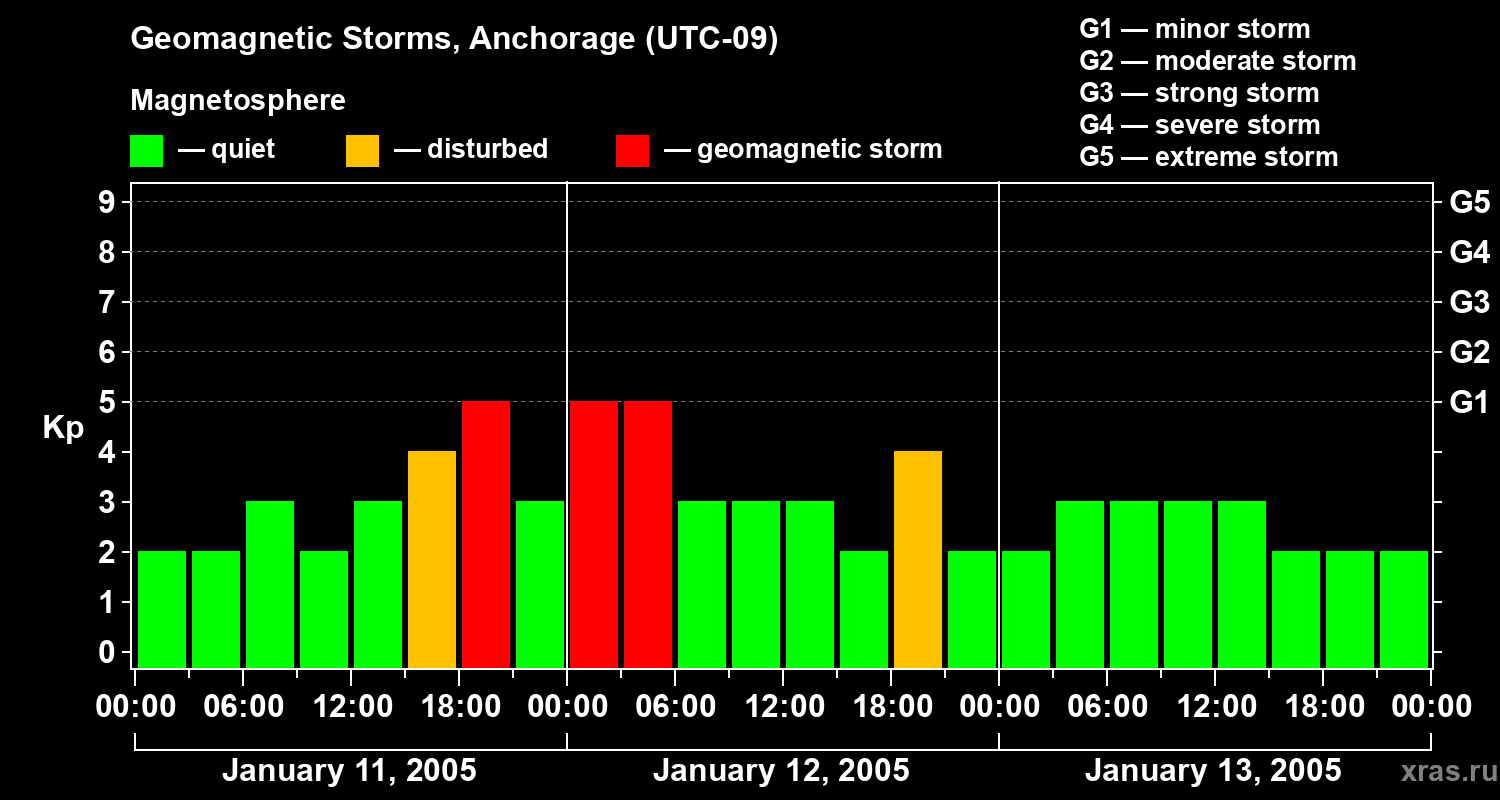 Geomagnetic storms in Anchorage on Jan 13, 2005