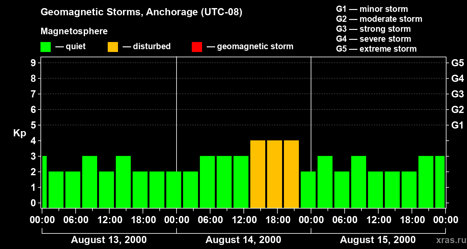 Geomagnetic storms in Anchorage on Aug 15, 2000