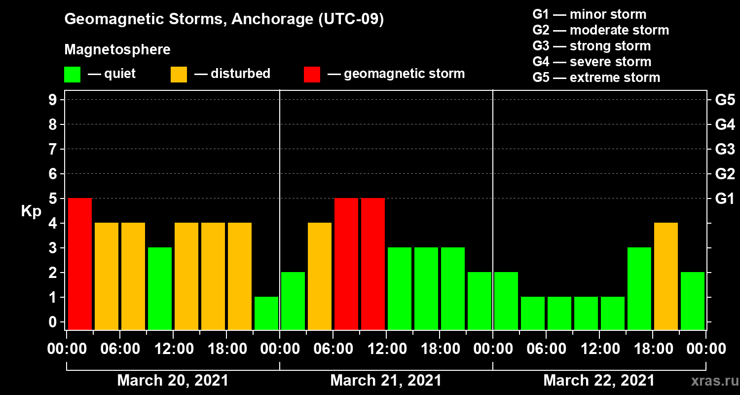 Geomagnetic storms in Anchorage — Mar 22, 2021