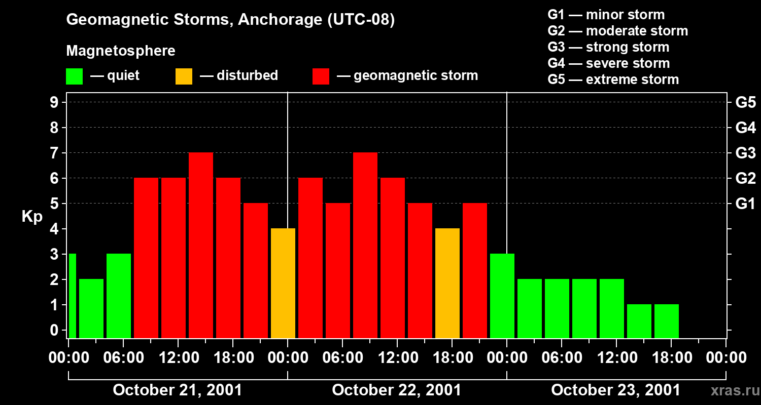 Geomagnetic storms in Anchorage — Oct 23, 2001