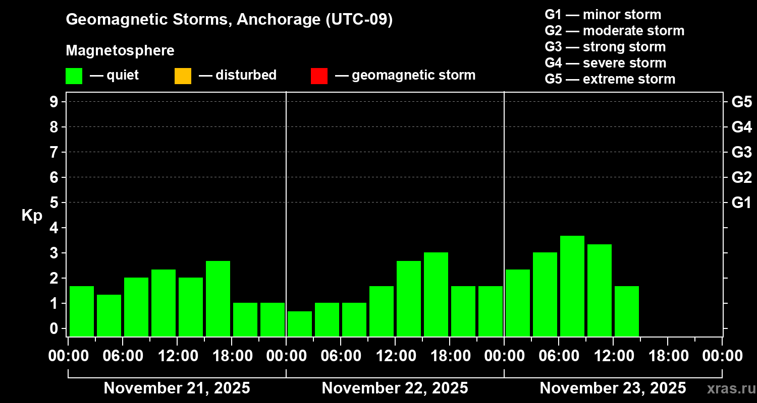 Geomagnetic storms in Anchorage — Nov 23, 2025
