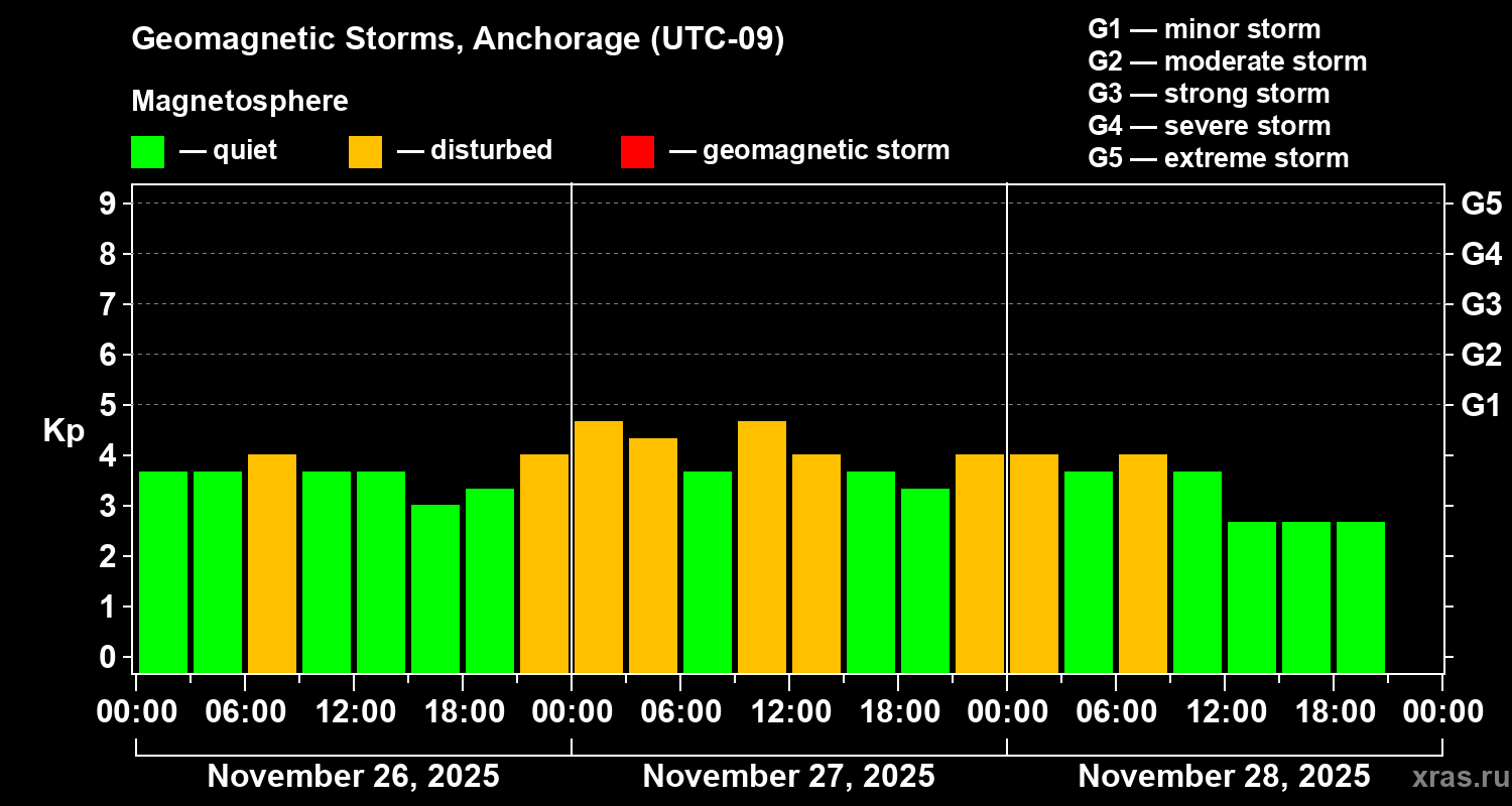 Geomagnetic storms in Anchorage — Nov 28, 2025