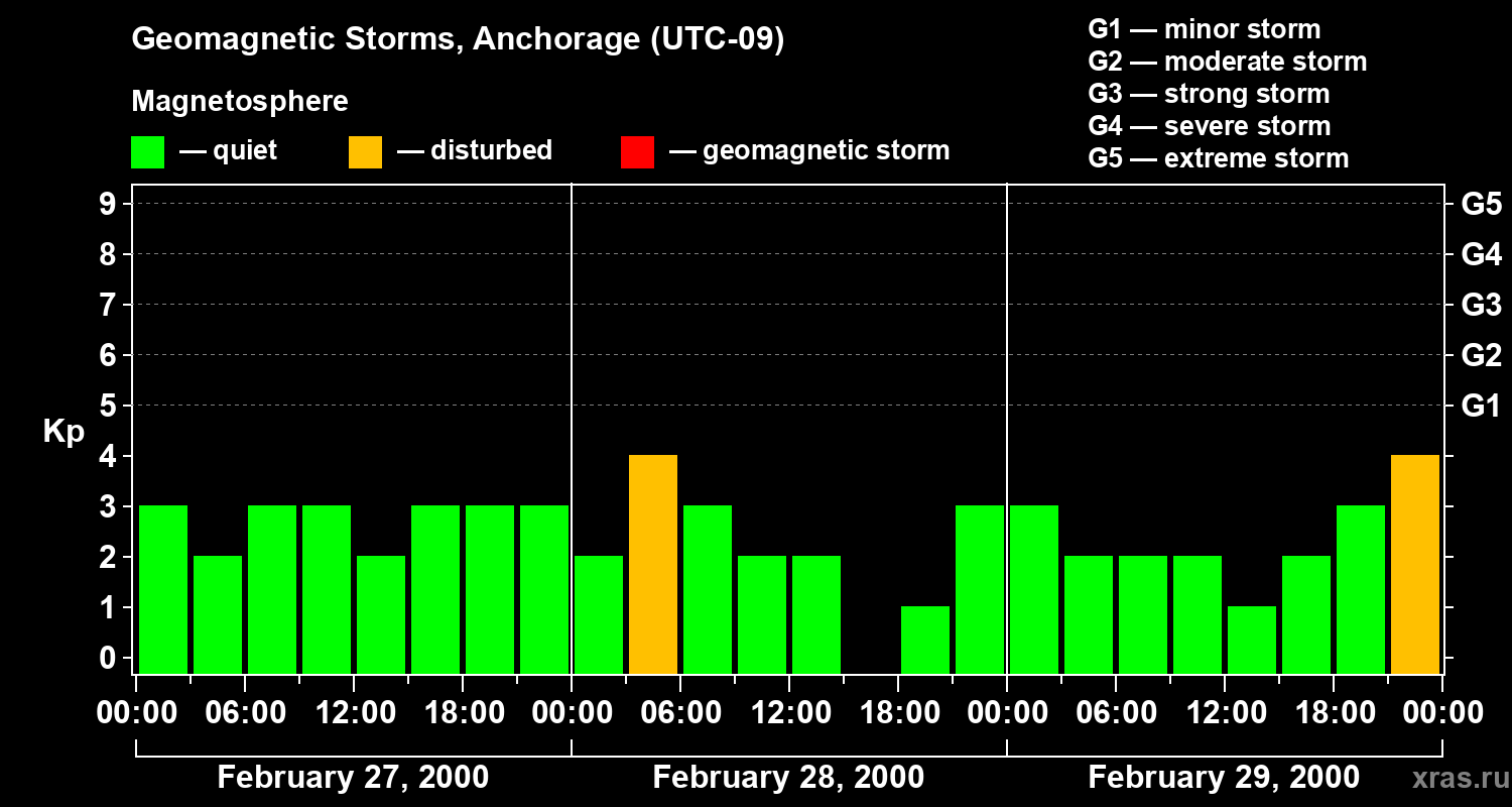 Geomagnetic storms in Anchorage on Feb 29, 2000