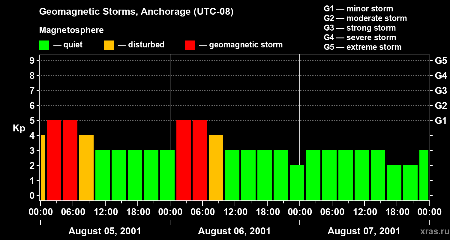 Geomagnetic storms in Anchorage — Aug 07, 2001
