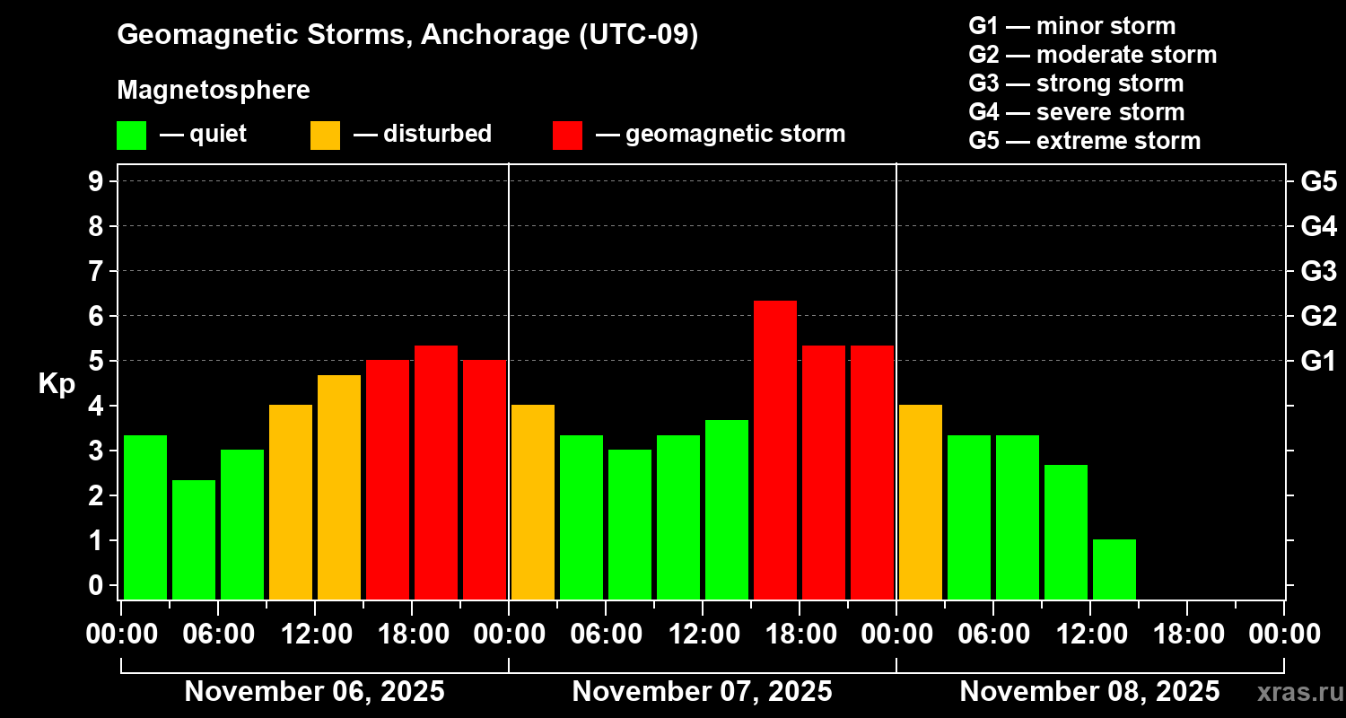 Geomagnetic storms in Anchorage — Nov 08, 2025