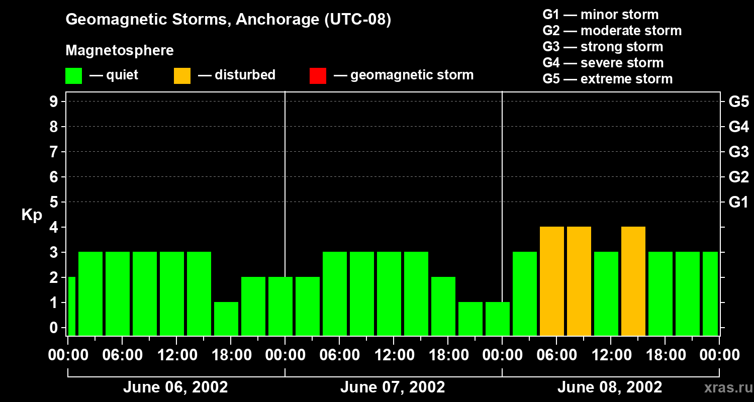 Geomagnetic storms in Anchorage on Jun 08, 2002