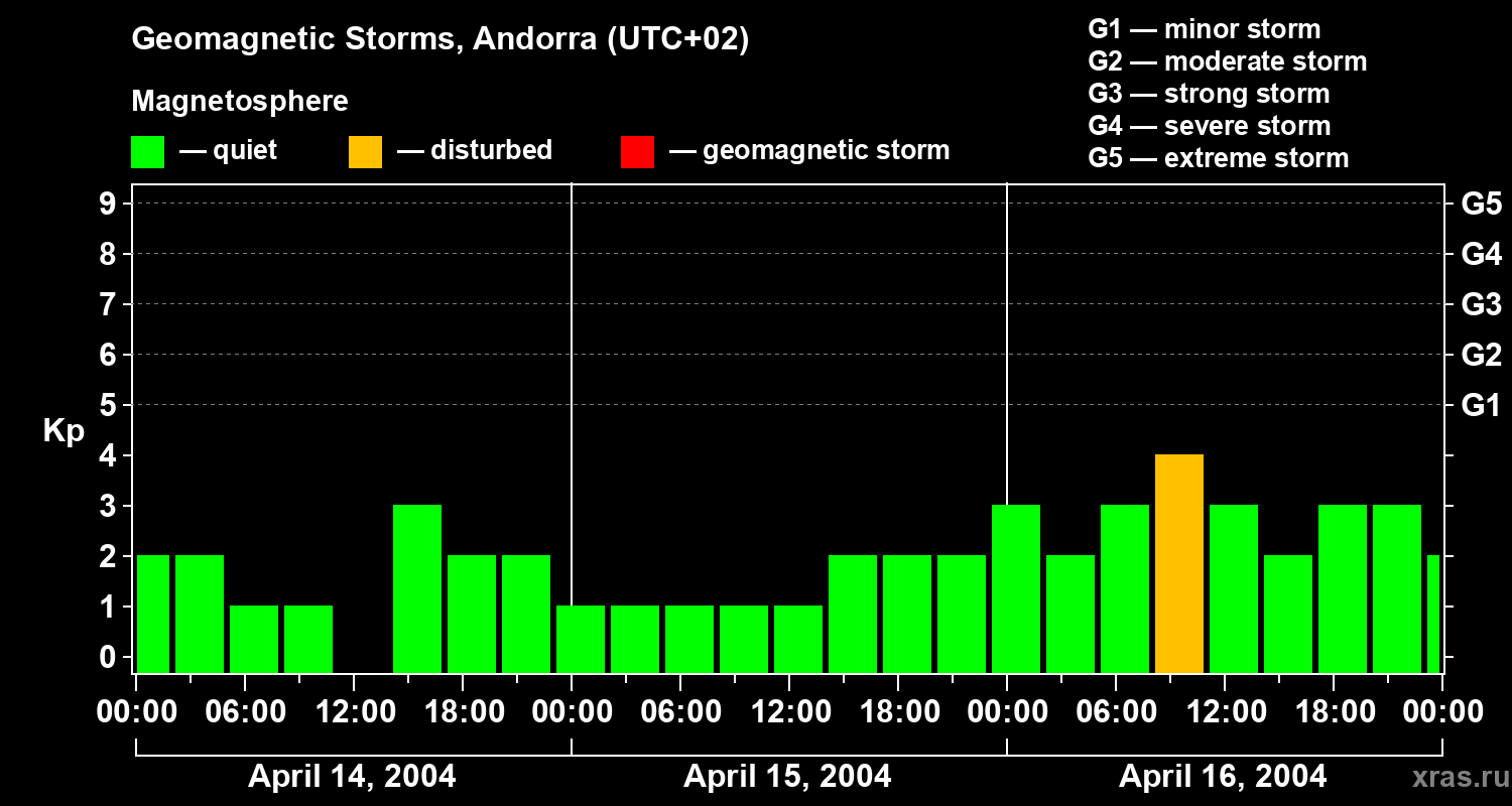 Geomagnetic storms in Andorra — Apr 16, 2004