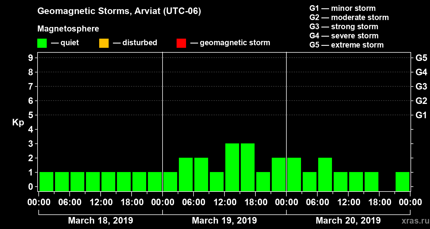 Geomagnetic storms in Arviat on Mar 20, 2019