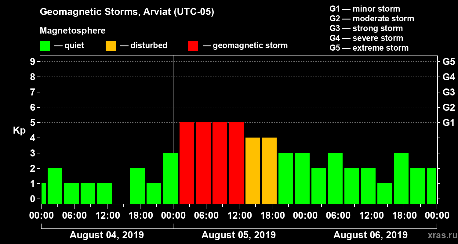 Geomagnetic storms in Arviat on Aug 06, 2019