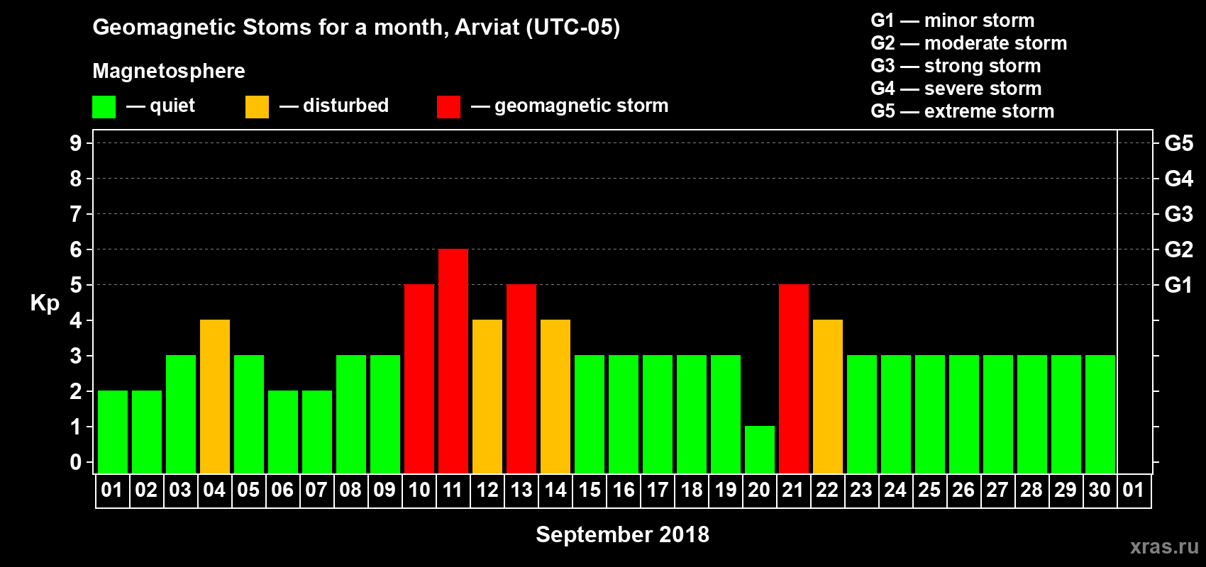 21 September 2018 — Magnetic storm of level G1