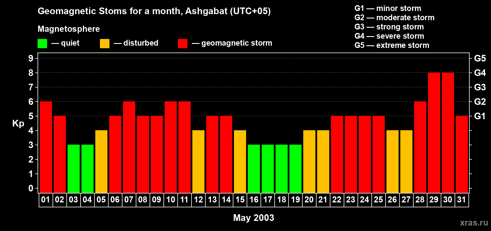 Geomagnetic storms in Ashgabat on May 31, 2003