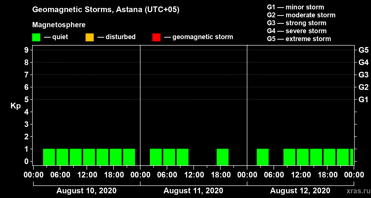 Changes in the geomagnetic index Kp from August 10 to 12, 2020 for mid latitudes