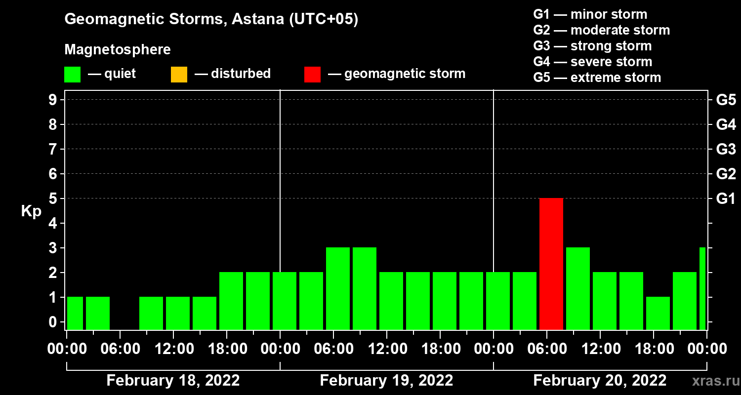 Geomagnetic storms in Astana on Feb 20, 2022