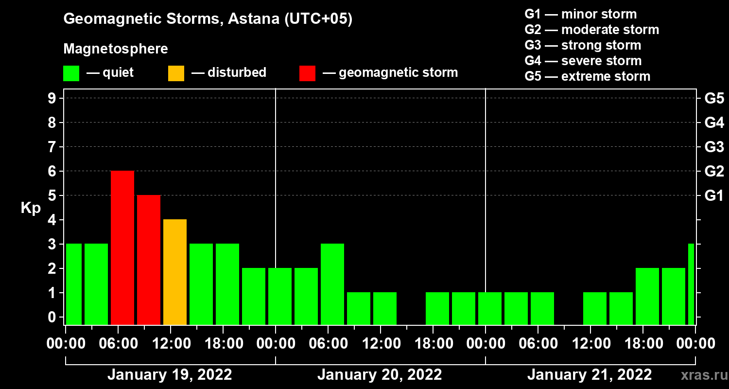 Changes in the geomagnetic index Kp from January 19 to 21, 2022 for mid latitudes