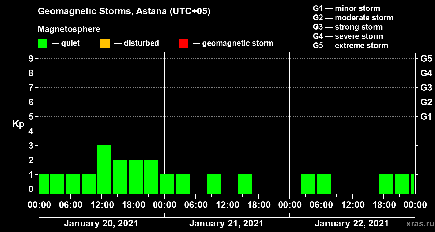 Changes in the geomagnetic index Kp from January 20 to 22, 2021 for mid latitudes