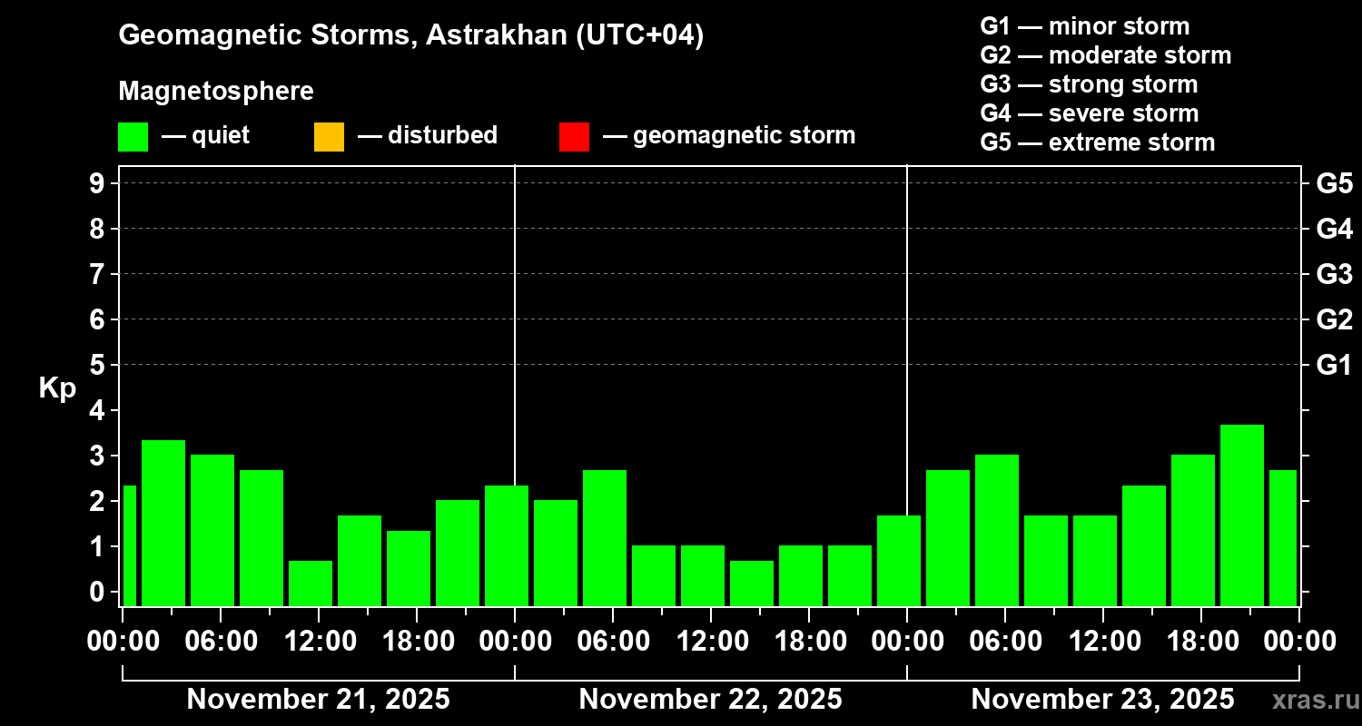 Geomagnetic storms in Astrakhan on Nov 23, 2025