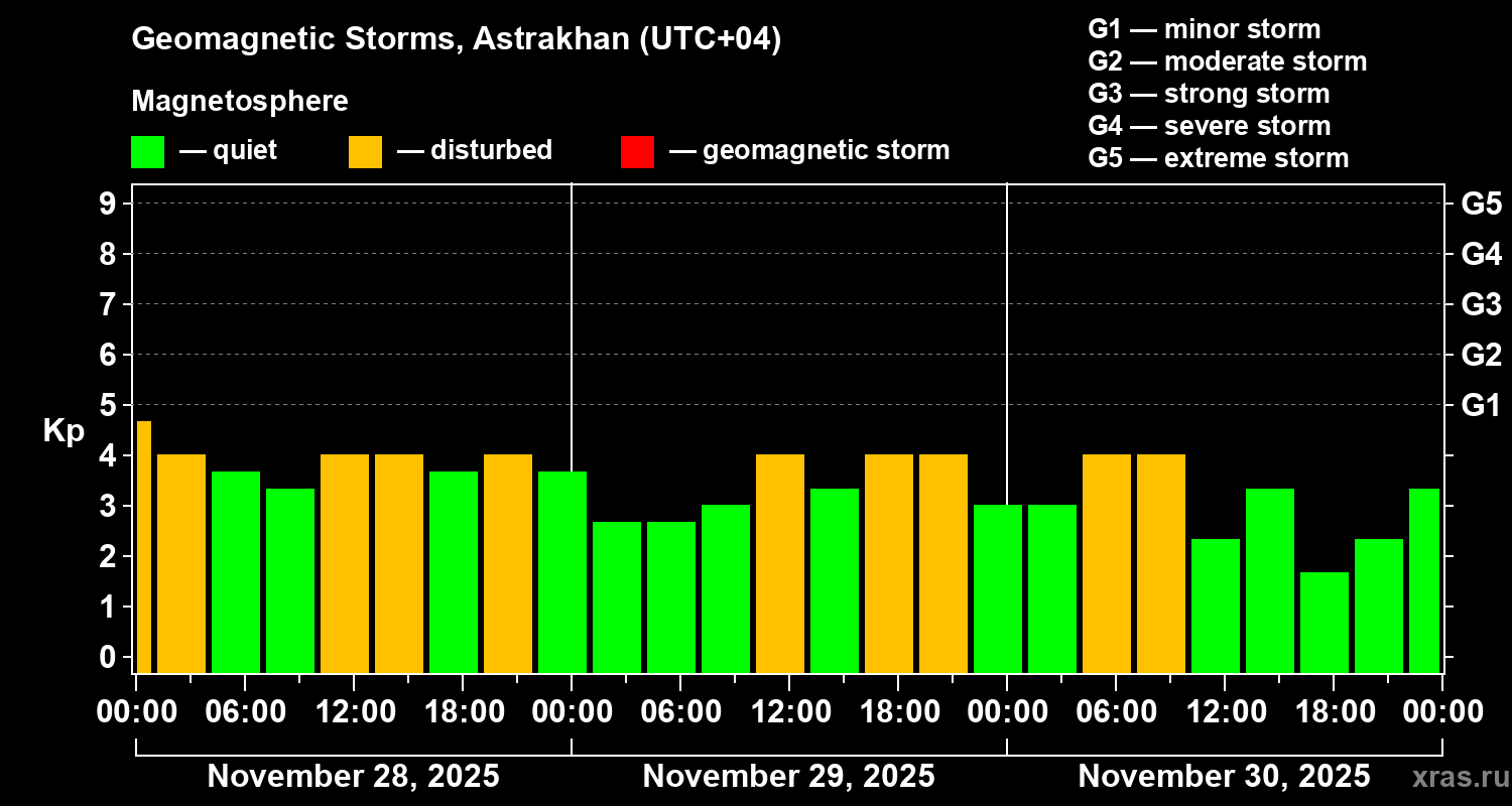 Geomagnetic storms in Astrakhan on Nov 30, 2025